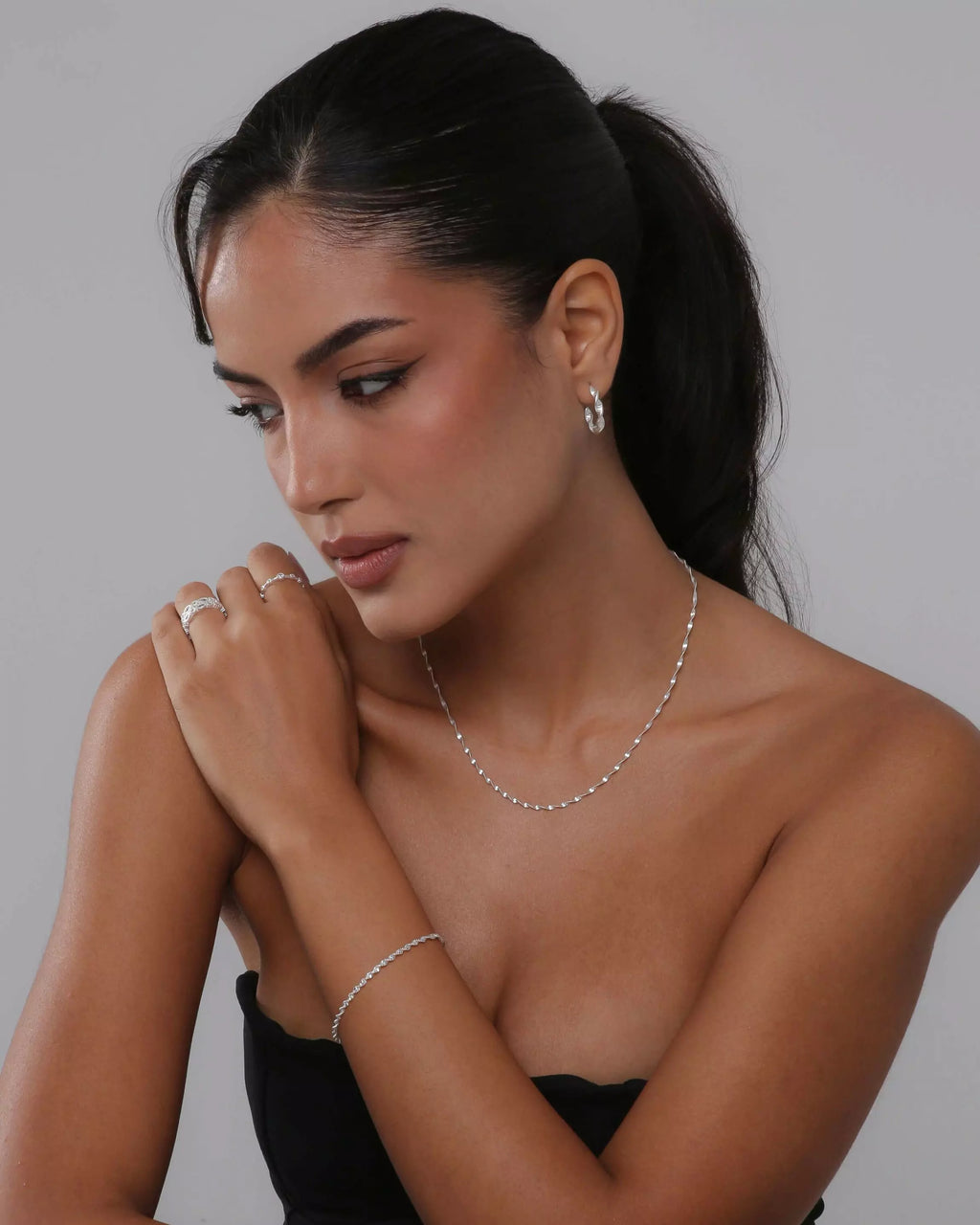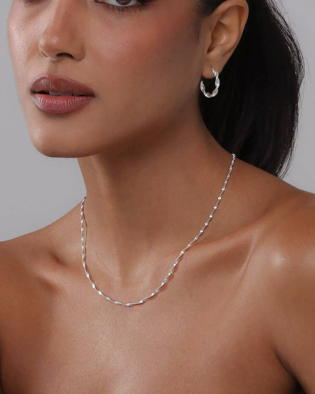 Kit Feminino Pulseira e Corrente Espiral de Prata